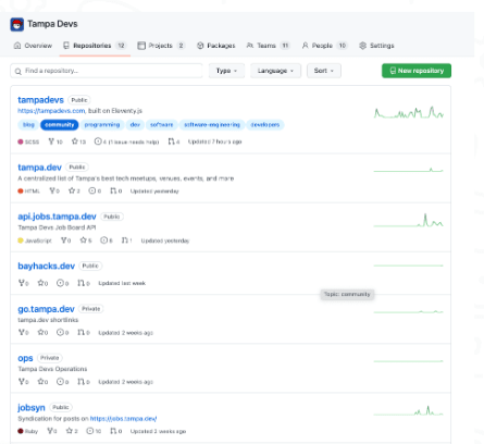 We've been setting up a huge number of infrastructure related work on our github page as well, from projects including our upcoming hackathon website, our one stop shop for upcoming events + volunteer work, the job board, slack syndicators, and more